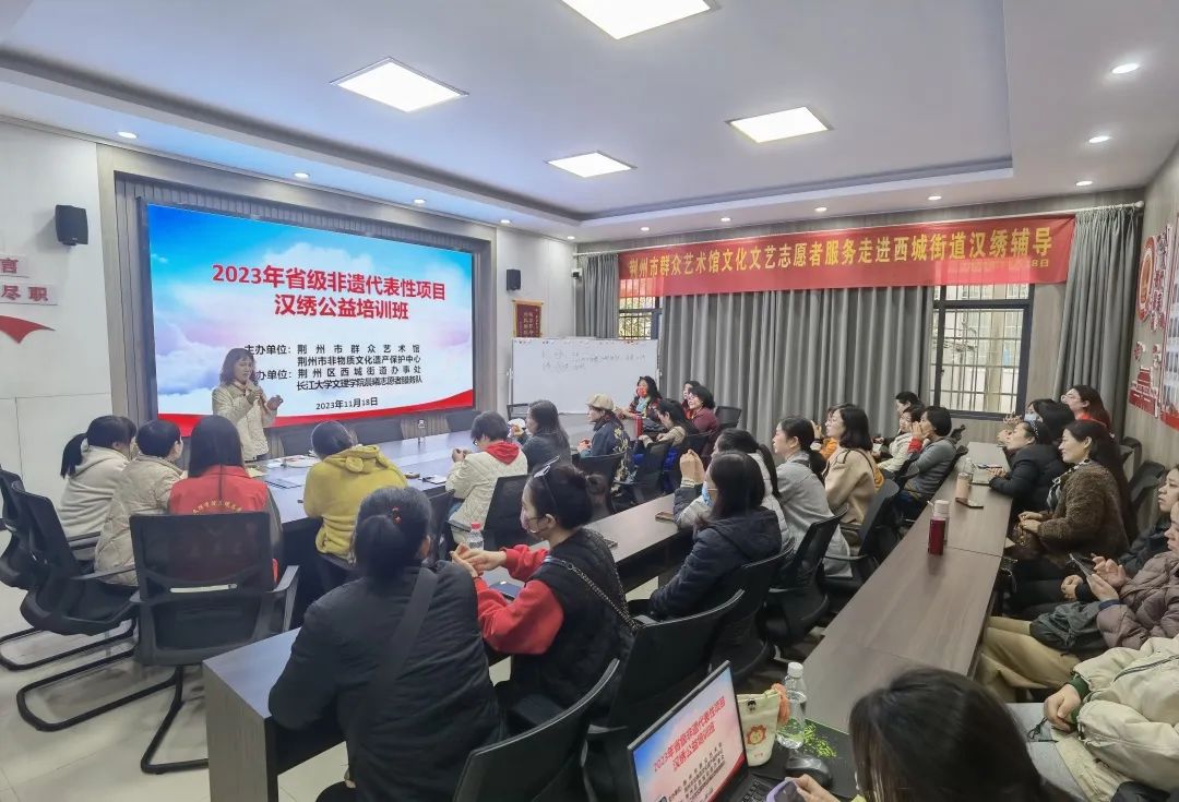 为进一步深入推进我市“非遗在社区”“非遗进公司”传承保护工作,由荆州市群众艺术馆(荆州市非物质文化遗产保护中心)主办,荆州区西城街道办事处、荆州市实验中学附属小学、bw必威西汉姆联官方网站高职部晨曦志愿者服务队承办的2023年省级非遗代表性项目汉绣公益培训班11月18日开班啦!