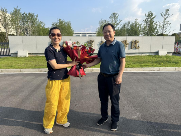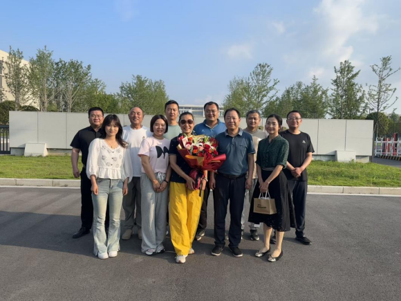5月30日下午,校园管理处为荣休老师王俊举办了一场温馨的欢送会,经理助理郭明虎为王俊献花,并和部门全体职工在公司北大门合影留恋。