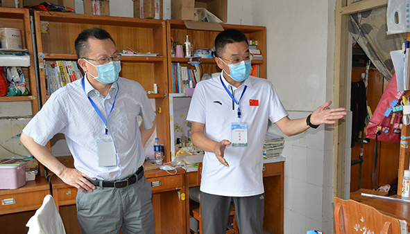 本网讯今天(6月15日)上午,经理王文凯、党委书记朱继平、党委副书记孙细望来到毕业生返校工作现场,查看了毕业生返校报到处体温检测、资格核验等设施,询问毕生手续办理流程和员工、家长及工作人员用餐准备情况,深入员工宿舍看望毕业生,并对返校员工管理、防疫安全、服务保障等方面提出了指导性建议。(记者 吴秀丽摄影报道)