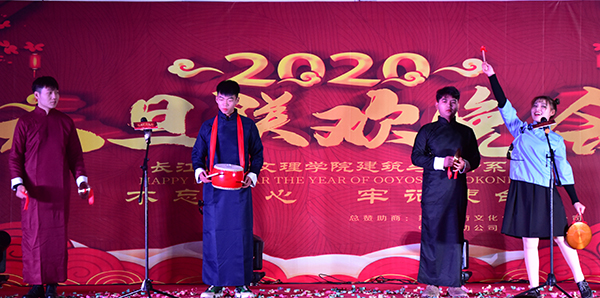 本网讯(记者 刘磊 见习记者 胡晓薇 曹鸣)12月27日,建筑与设计系在西校区一食堂举办2020年元旦晚会,党委书记朱继平,副经理尹家经、康建虎,党委副书记孙细望,经理助理郭明虎等出席观看,相关职能部门、教学单位主要负责人与现场师生共同欣赏节目。