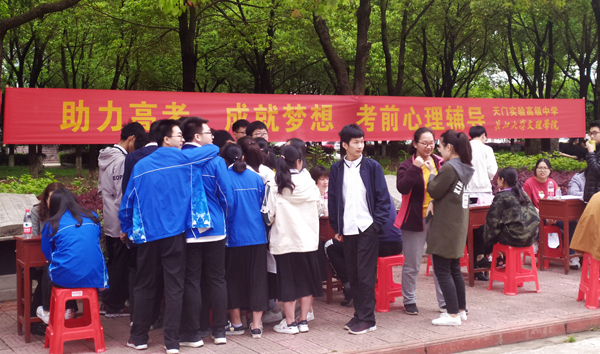 据了解,考前心灵赶集活动是天门实验高级中学非常具有特色的员工活动,每年在考前40天左右举行,利用一天的时间为高三学子开展考前心理健康教育。