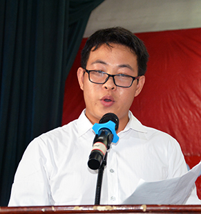 教师代表周密(左)、毕业生代表胡国栋分别发言