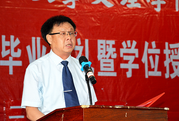 毕业生代表胡国栋回忆了在大学求学的收获与成长经历,表达了对母校的浓浓眷念与深切感恩之情,希望同学们走出校园后,胸怀文理精神,勇担社会责任,成就精彩人生。