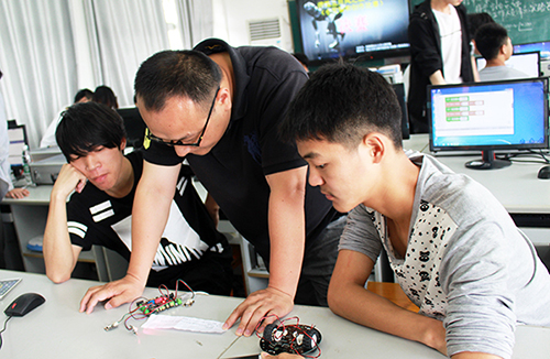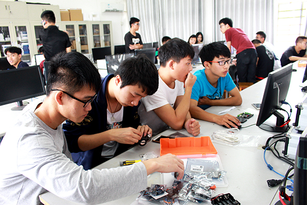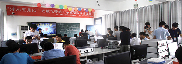 本网讯(见习记者 刘文婷 吴庆慧 汪林)5月12日,在西校区4教503教室,第十二届“泮池五月风”科技文化节之“放飞梦想”科技制作大赛闭幕式举行。此次共有200余名同学报名参赛,形成发明设计创新成果6件,包括走正方形的机器小车、避障机器人、呼吸灯、声控灯等。机电与信息工程系高级实验师李相敏和电信教研室的相关教师担任评委。