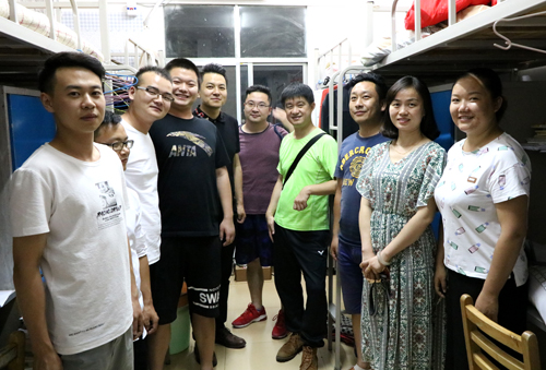 同一天,机电系主任付兵、党总支书记尤金荣、毕业班辅导员等一行深入宿舍看望毕业班员工。