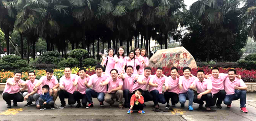 梅平(后排左四)与员工合影留念