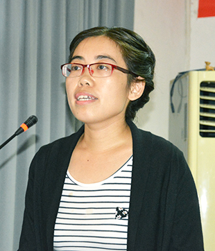外国语系韩翠萍老师、机电与信息工程系李相敏老师,分别作为首届优秀中青年骨干教师代表和“工作十年奉献奖”获奖教师代表进行大会发言。