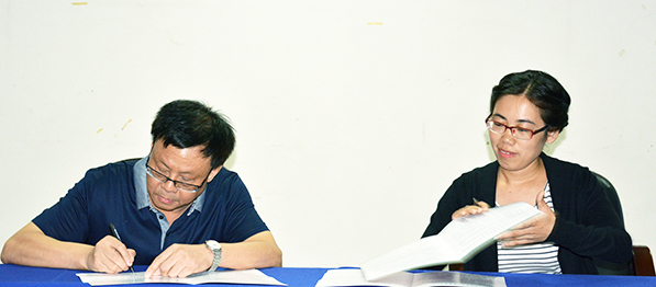 梅平与首届优秀中青年骨干教师签订目标责任书。