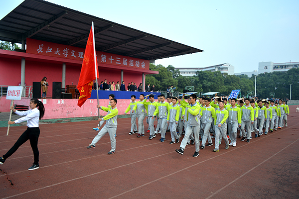 “护我国旗,扬我国威!”高擎鲜艳的五星红旗和院旗,英姿飒爽的国旗护卫队、院旗队队员依次经过主席台,整齐一致的步伐、气势磅礴的口号、刚健有力的摆臂,展示了新时期青年学子昂扬向上的精神风貌,赢得主席台上阵阵掌声;鲜花队、红旗队迎着晨光,精神抖擞的迈步向前,红艳如火的旗帜在秋风中高高飘扬,队员们笑容灿烂、神情激动,他们以饱满的热情、奋进的姿态尽情展示着青春的风采;裁判员队伍踏着旋律稳步前进,他们将秉持公开、公平、公正的原则,以奉献意识和敬业精神为赛事护航;各系部代表队以别出心裁的亮相、生动有趣的造型和拼搏奋进的姿态,诠释最美体育精神,为2017年的运动会写下别样的金秋记忆。
