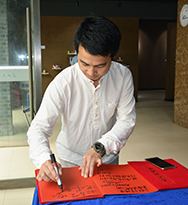 展览现场,院领导和嘉宾们饶有兴致的驻足欣赏作品,就展出作品的艺术风格和部分同学今后的就业方向等话题,与师生们进行了沟通和交流。李新家、郭睦庚、柯昌龙在灯火辉煌的展厅即兴挥毫,依次书写“念去去千里烟波,暮霭沉沉楚天阔”、“祝设计系毕业设计作品展越办越好”、“教育圣地·艺术天堂”等赠言,祝福建筑与设计系和毕业生们拥有广阔的发展前景和更加美好的未来。