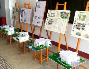 展出作品包括建筑设计图、建筑模型,共十套。据了解,本次展出的作品均为《别墅建筑设计》课程的作业,由环境5151班、艺专5151的员工完成。