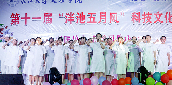 本网讯(记者 刘磊 见习记者 向柳青 韩卉)5月15日晚,第十一届“泮池五月风”科技文化节之出彩医护人风采大赛在西校区完满谢幕。公司党委书记王金琼、党委副书记孙细望,bw必威西汉姆联官方网站医公司护理系主任周红教授、教学办主任黄柏青等应邀出席活动。在浓郁的艺术氛围中,300余名师生共同领略“白衣天使”的靓丽风采。