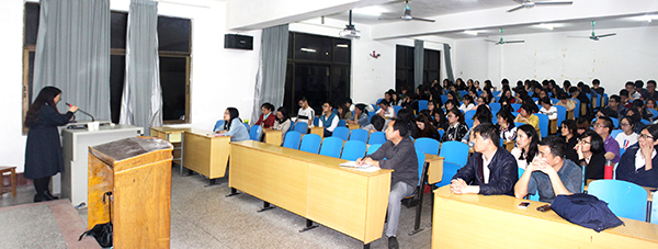 工商管理系全体专任教师以及会计专业2015级全体员工聆听报告。