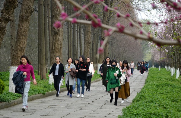 本网讯(记者 吴秀丽)“暖雨晴风初破冻,柳眼梅腮,已觉春心动。”在春和日暖、万物复苏的美好时节,公司于3月9日下午举行女教职工“迎春健康行”绕荆州古城墙(外环)健步走活动。
