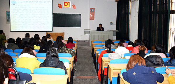 本网讯(记者 刘磊 见习记者 李再理)3月9日下午,bw必威西汉姆联官方网站经济公司副经理何蒲明教授应邀来公司讲学,围绕“明确考研新航向 实现人生理想”这一主题作学术报告。工商管理系百名师生认真聆听报告。