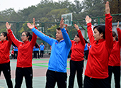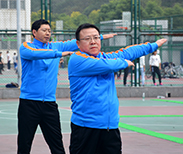 院领导也饶有兴致的走上运动场,热情高涨的和教职工共同参加比赛。