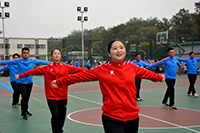 在庄严的国歌声中,全体起立。随后,8支工会代表队依次上场,以规范的动作完成第九套广播操。大家服装统一、步伐矫健,以昂扬进取的姿态展示了文理人的风采。