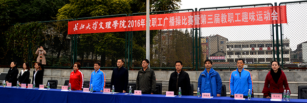 王金琼宣布2016年教职工广播操比赛暨第三届教职工趣味运动会正式开始。