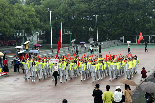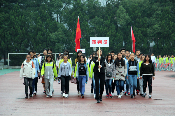 本网讯(记者 吴秀丽)10月23日上午,在公司第十二届运动会开幕式上,由院国旗护卫队组成的国旗方阵和院旗方阵、由医药与护理系员工组成的鲜花方阵、由机电与信息工程系员工组成的红旗方阵、由师生代表组成的裁判员方阵以及7个系部运动员方阵依次亮相。