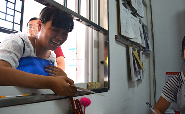 “刚收到录取通知书时,就接到辅导员打来的电话,通知我今天来校报到。现在,通过‘绿色通道’,我已在老师的帮助下顺利办理了缓交学费手续。终于一身轻松!”