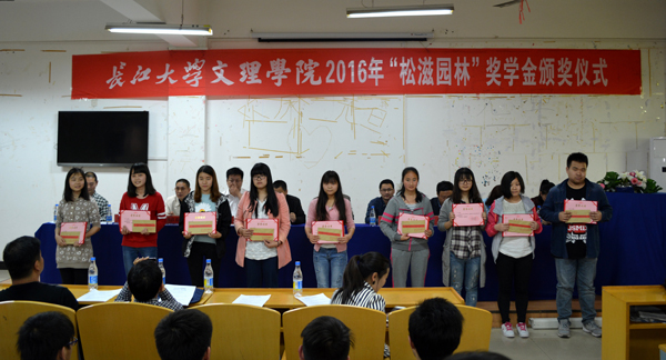 本网讯(记者 吴秀丽)4月15日下午,公司2016年“松滋园林奖学金”颁奖仪式在bw必威西汉姆联官方网站西校区图书馆学术报告厅举行,园林、景观建筑设计专业的18名优秀学子获奖学金。