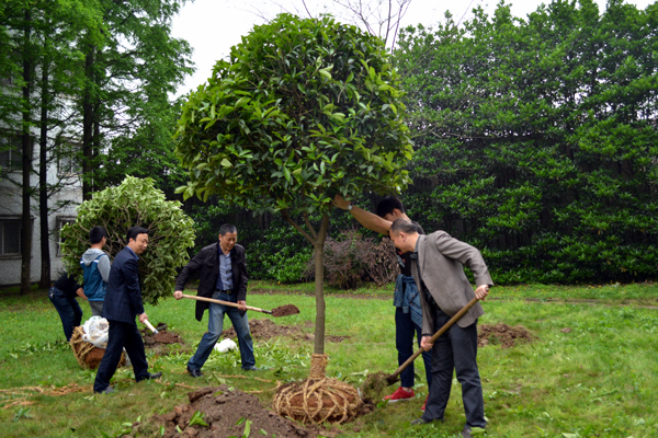 颁奖仪式前,校地双方共同栽种“成长树”,作为双方合作两周年的纪念。