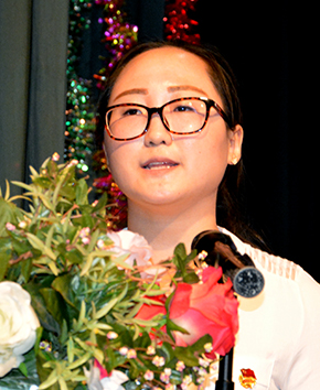 经济与贸易系物流5141班刘迪、人文与传媒系中文5141班刘乐乐同学,分别作为优秀共青团干部、优秀团支部代表发言。