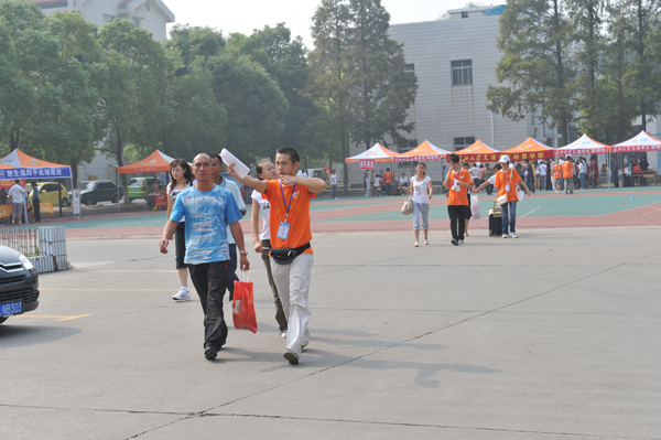 丹桂飘香的秋天骄阳依旧如火,彩旗映衬下的长大西校区今天显得格外热闹。身穿橘红色的志愿者们纷纷忙碌了起来,开始了自己的迎新工作。“大叔您好!请问需要帮忙的吗?”刚送走一位办理完入住手续的新生,志愿者乐涛看见一位满头大汗的独臂爸爸吃力的扛着一大袋行李,他主动迎了上去!“您孩子是学的什么专业,您来自哪里”,他边帮忙扛行李边和这位新生家长聊起来,前往迎新咨询台填写报名信息表、介绍入学流程、指引报名缴费地点,并一直把新生送到寝室,最后,这位家长拉着乐涛的手说:“真是谢谢你了啊!”,而乐涛擦擦脸上的汗珠,羞涩的说:“不客气,去年我也是在学长学姐的帮助下办完报到手续的,当我们成为学长学姐的时候,我们有理由这么做。”