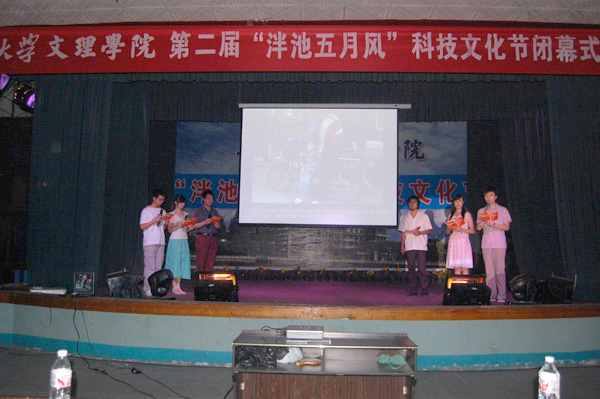 首先学工处主任彭中代表活动组委会为五月科技文化节致闭幕词。他感谢为此次科技文化节做了大量工作的老师,同时祝贺在科技文化节中取得优异成绩的同学。彭主任对此次科技文化节做出了高度评价,同时也表达了对同学们的深切希望:科技文化节的时间有限,而对于科技的追求是无限的,同学们永远都应该具备创新的理念、拼搏的意志。