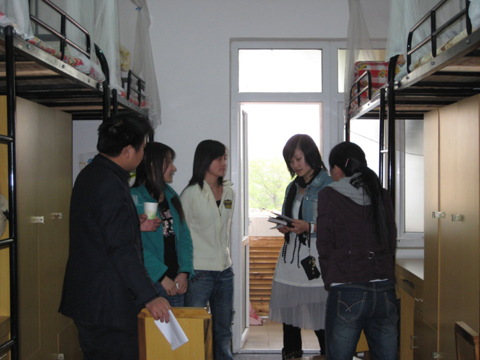 此后全体与会人员在组织员郭家驹同志的带领下,深入到他们所联系培育的寝室与同学们做了面对面的交流。在男生宿舍210室,学工处彭中主任与同学们亲切交谈,热心地询问了同学们在生活上的一些问题。在人力资源专业的寝室里,教务处曹骥主任对同学们在学习上的困难作了一一解答,并鼓励同学们要以良好的心态来面对专业资格证的考试。组织与培训中心主任许战在他所联系的寝室里与同学中的入党积极分子们进行了深入细致的思想交流。