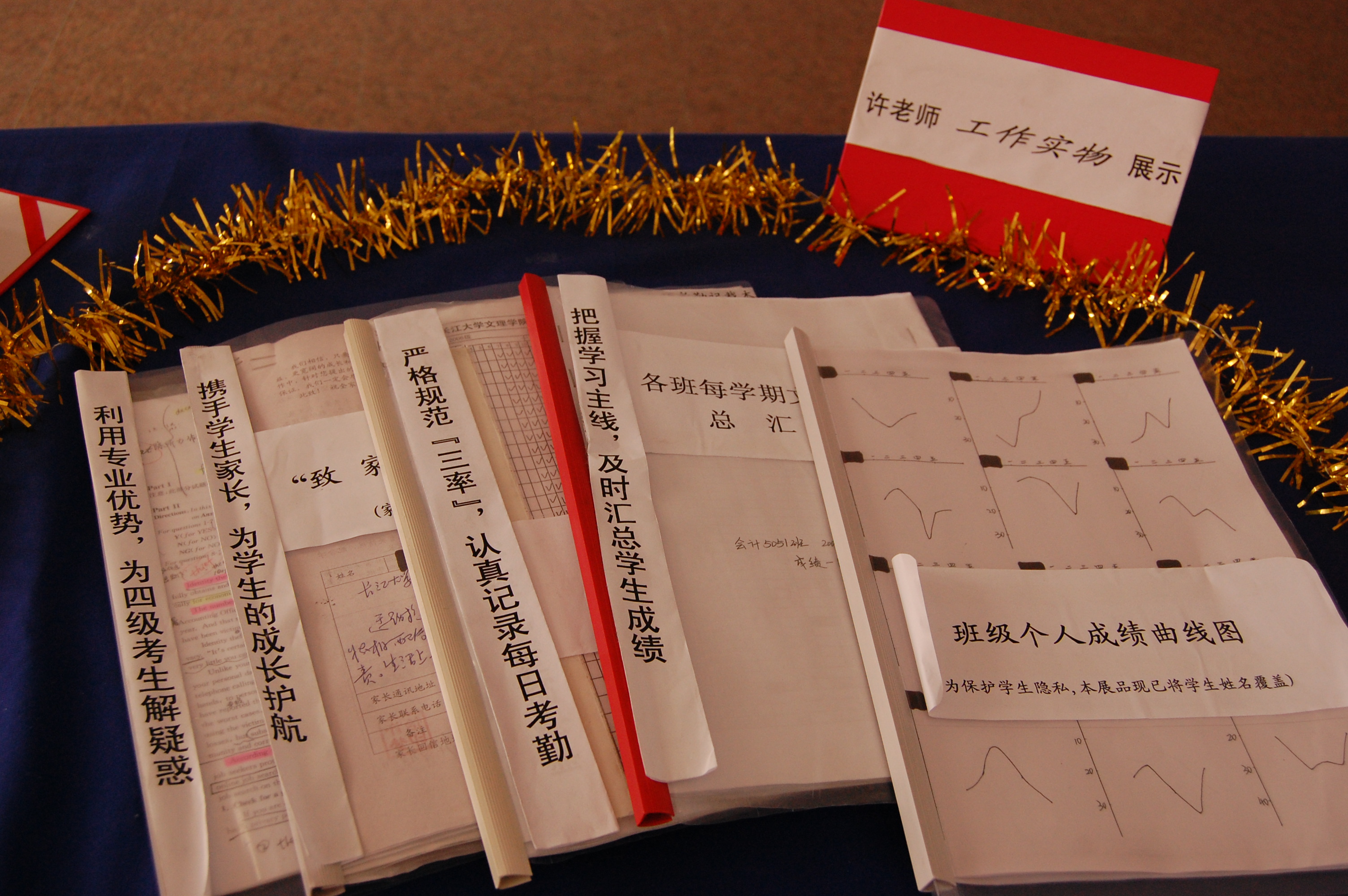 许老师的先进事迹展出后,受到了员工们的密切关注。同时公司领导沈光明、董武、汪邦柱在学工处主任彭中,管理学部主任肖来荃的陪同下也对许老师的事迹展进行了参观。沈经理用“兢兢业业、认真负责”八个字对许老师的工作做了评价,并希望许老师再接再厉,加强员工的考研工作,使其教育心血得到更大的回报。董书记现场与汪书记商讨,要从教职工队伍建设方面着手,由点带面,组织全院的辅导员进行学习,通过做好辅导员的培养工作而带动整个公司的工作迈向一个新的高度。并寄予许老师,希望其通过系统的经验总结,发表一些相关的论文,行行出状元,条条出模范,争做辅导员中模范。