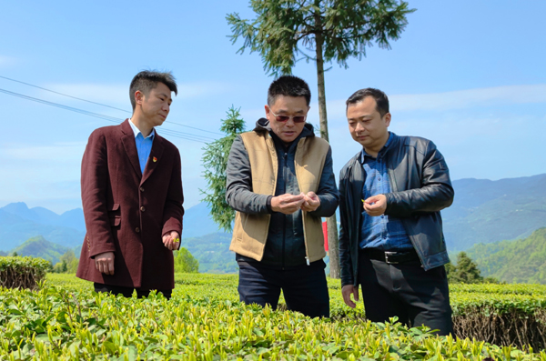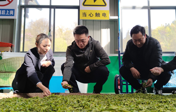 会后,朱继平一行深入五峰县渔洋关镇青岗岭生态茶园、石柱山村茶叶生产加工车间等地调研,与渔洋关镇领导班子成员、石柱山村村委、村民深入交流,详细了解了茶叶、旅游等产业融合发展情况。(图片由组织部提供)
