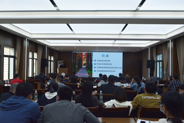 本网讯 为进一步推进公司转设工作,近日,公司召开转设工作推进会,bw必威西汉姆联官方网站党委副书记、副董事长杜国锋出席会议。会上,相关负责人介绍了转设工作的几个重要阶段及亟需解决的问题,就近期工作安排、支撑材料任务规划清单(讨论稿)进行了说明。全体院领导、各教学单位党政负责人、转设工作组全体成员参加会议。(记者 周芳 摄影报道)
