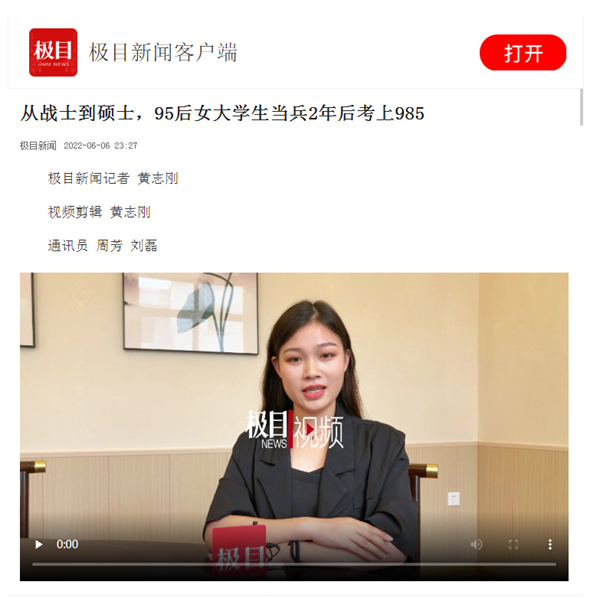 本网讯 近日,bw必威西汉姆联官方网站商务英语专业大四员工田蕊顺利考取武汉大学硕士研究生,该事迹经公司宣传部宣传报道后,由极目新闻记者后续进行视频采访报道,该新闻刊发后,先后被楚天都市报、腾讯新闻、网易新闻、今日头条、搜狐网、西瓜视频等各大网络平台转载,获得了较高的关注度。