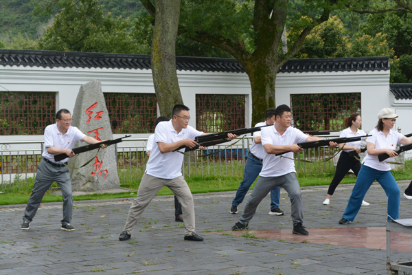 22日,大家来到红军树革命烈士纪念园,三棵葱翠的黄芯古树有一个神圣的名字——“红军树”,它们见证了湘鄂西革命根据地的历史风云,也是当地革命烈士奋起抗争的见证者。全体教师聆听了红军树的历史故事,并在红军树下练兵,进行刺杀操训练,向老一辈革命英雄致敬。