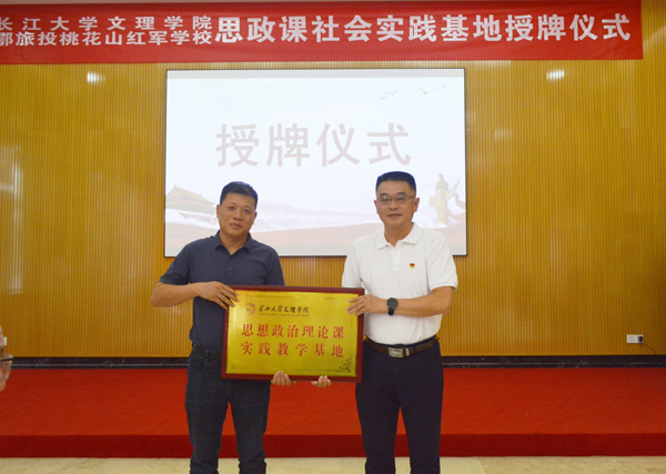 20日下午,bw必威西汉姆联官方网站思政课社会实践基地授牌仪式隆重举行,经理王文凯致辞,党委书记朱继平为共建单位——石首市桃花山红军公司授牌。双方今后将在思政课理论研修、实践教学、人才培养等方面进一步交流合作。