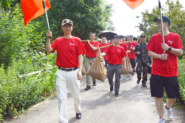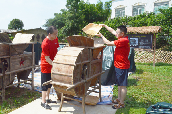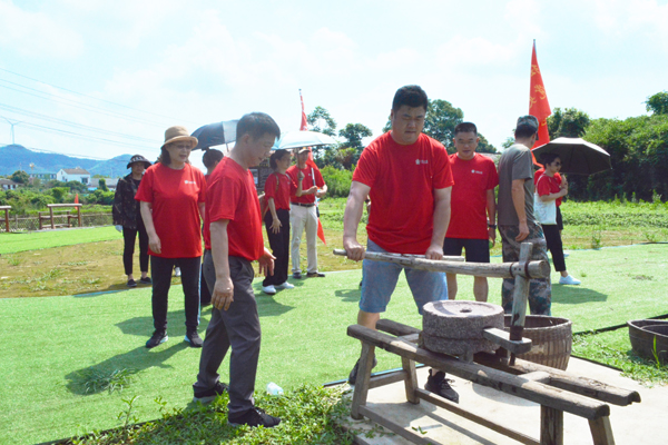 21日,全体人员整理衣装重走红军小路、重现红军练兵、重演雄师渡江,体验南泥湾大生产,不少教师现场学习踩水车、编草鞋、推石磨、摇风车、挑军粮、唱红歌……近距离缅怀革命先烈,感受战火纷飞的时代。