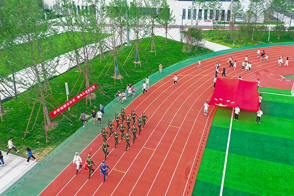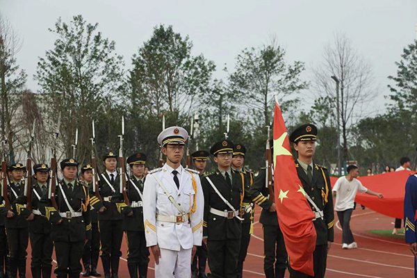 本网讯 6月12日清晨,建筑与设计公司在新校区田径运动场举行升国旗仪式,该公司全体员工参加仪式。6点50分,国旗护卫队队员们迈着矫健的步伐护送鲜艳的五星红旗走向升旗台,国歌奏响,五星红旗冉冉升起,全体师生高唱国歌,行注目礼。国旗下举行了方阵活动拼出“梦想”两个大字,同学们还举行了诗朗诵活动,表达奋斗的决心、筑梦的信心。建筑与设计公司经理张系斌号召同学们志存高远,珍惜时间,用实际行动把握青春。(见习记者 张艺薇 通讯员 李欣怡 杨浩 摄影报道)