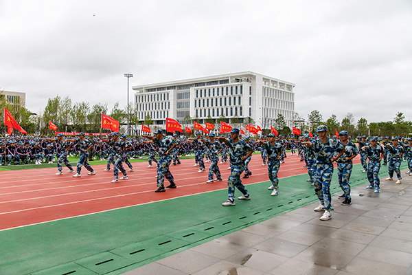 2023级新生组成23个军训连进行了成果展示,汇报了入校15天以来军事训练的成绩。