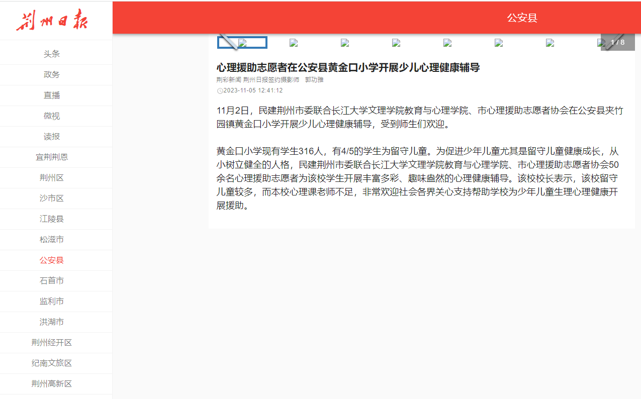 11月2日,民建荆州市委联合bw必威西汉姆联官方网站教育与心理公司、市心理援助志愿者协会在公安县夹竹园镇黄金口小学开展少儿心理健康辅导,受到师生们欢迎。