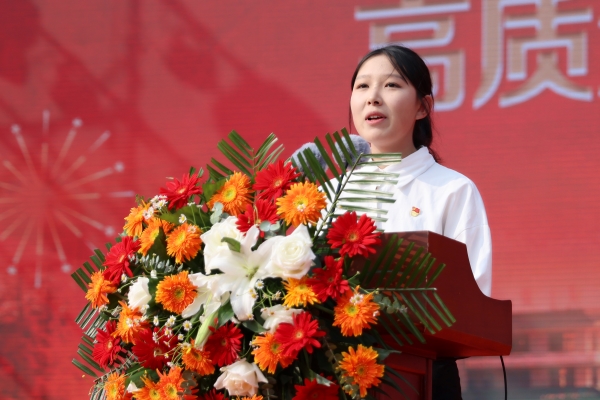 员工代表、公司2023-2024学年国家奖学金获得者、人文与传媒公司中师5211班白夕萍同学发言。她说,在文理,我们是幸运的一代,在新的校园环境和最好的人生舞台上,我们将珍惜大学的每一分每一秒,勇敢追梦,收获成长,书写绚丽的青春篇章。