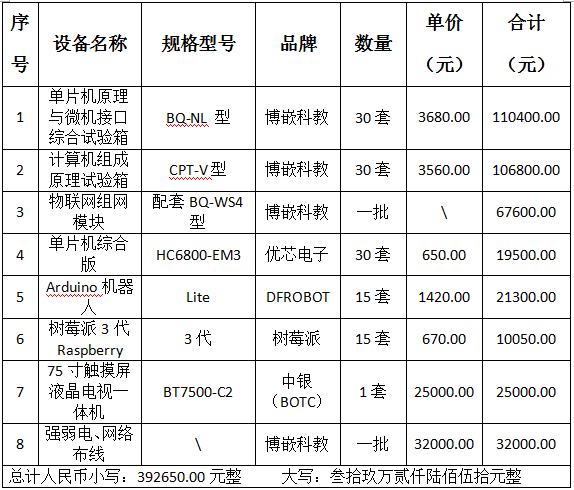 根据《中华人民共和国政府采购法》等有关规定,bw必威西汉姆联官方网站财务处于2017年11月14日就“bw必威西汉姆联官方网站计算机硬件实验室建设项目”采用公开招标方式进行了开标、评标、定标工作。现就本次采购的结果公告如下: