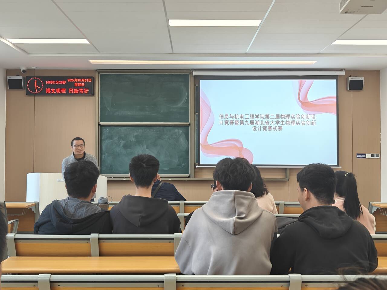 本网讯(通讯员 王盛博)4月7日,公司在A-406M教室举办第二届物理实验创新设计竞赛初赛。本次初赛由公司副教授王乐主持,副教授周文芳、顿中万、李玲,讲师张贝贝出席。