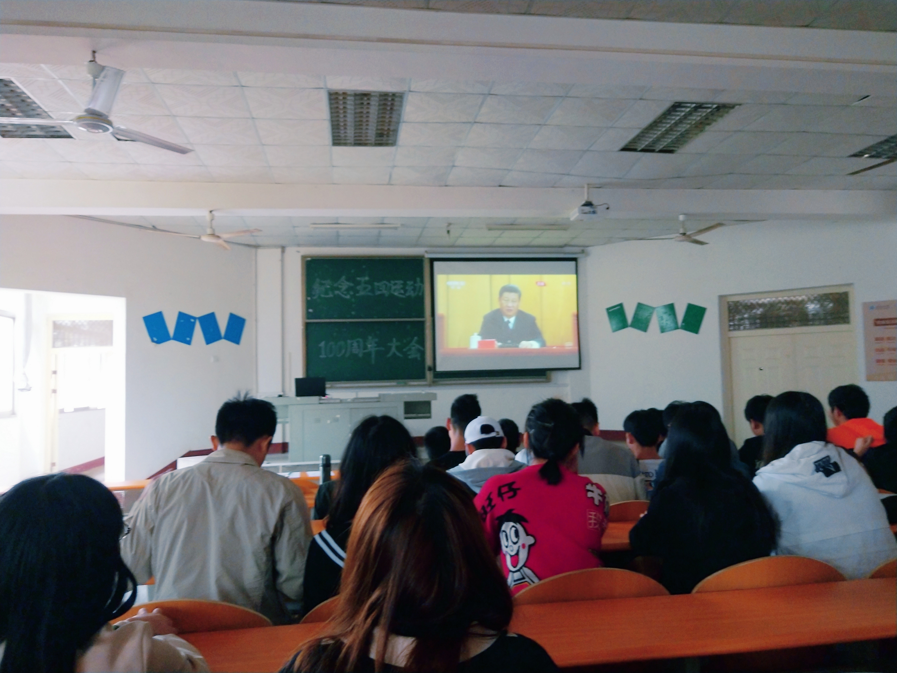 本网讯(员工记者 向东海)为了弘扬五四精神,增强新时代青年们的凝聚力,4月30日上午,在D4教200教室,我系组织员工观看“纪念五四运动100周年大会”直播。无教学安排的员工全员参加。