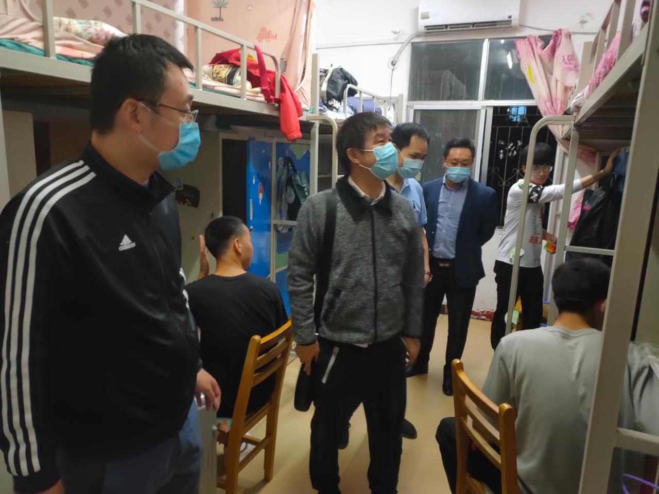 晚八点,系主任付兵、党总支书记吴海良、副主任呙明辉、副书记辛裕、辅导员成观雄、陈质晶、燕梦蝶走访各新生宿舍,查看2020级新生入住情况,详细询问同学们的身体健康状况,对大家的到来给予热烈的欢迎,并送上真挚的祝福。