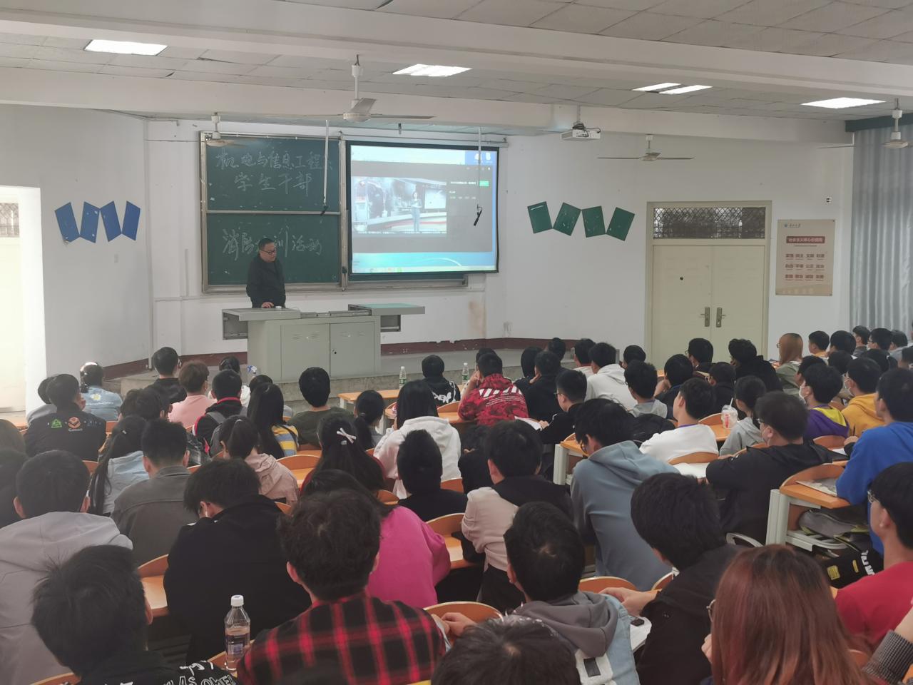 会议开始,张立新以两个火灾事故的实例视频引出公司火灾的主要发生地为寝室和教室,为同学们的校园生活敲响警钟。随后,他结合PPT,围绕“校园火灾及预防”、“常见的消防器材、设施及使用方法”、“疏散逃生”三个方面,向同学们详细阐述了必要的消防安全知识,常见的消防器材和设施的使用方法,并严肃告诫同学们在日常生活中不要乱用消防器材,避免对自身造成伤害;面对火灾要量力而行,切记盲目行动,要保护自身安全。