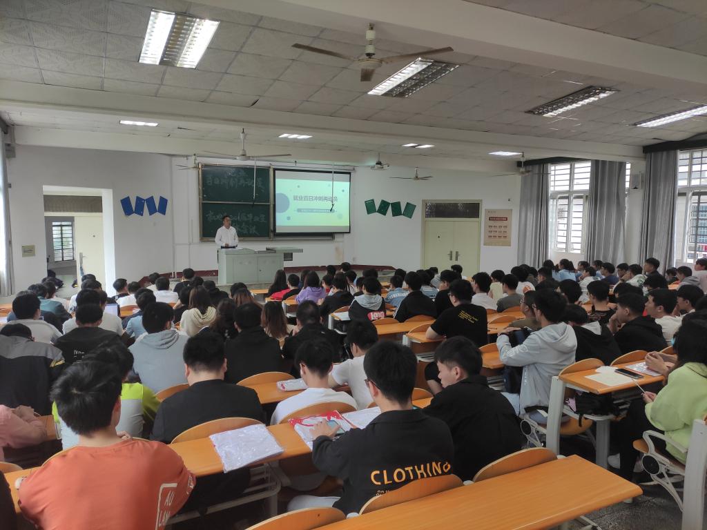 本网讯(员工记者 周晶晶)5月26日下午,在西校区四教200教室,我系召开以“就业百日冲刺再动员”为主题的2021届毕业生全体会议。党总支书记吴海良,辅导员陈质晶、成观雄、燕梦蝶出席,2021届全体毕业生参加,会议由系党总支副书记辛裕主持。