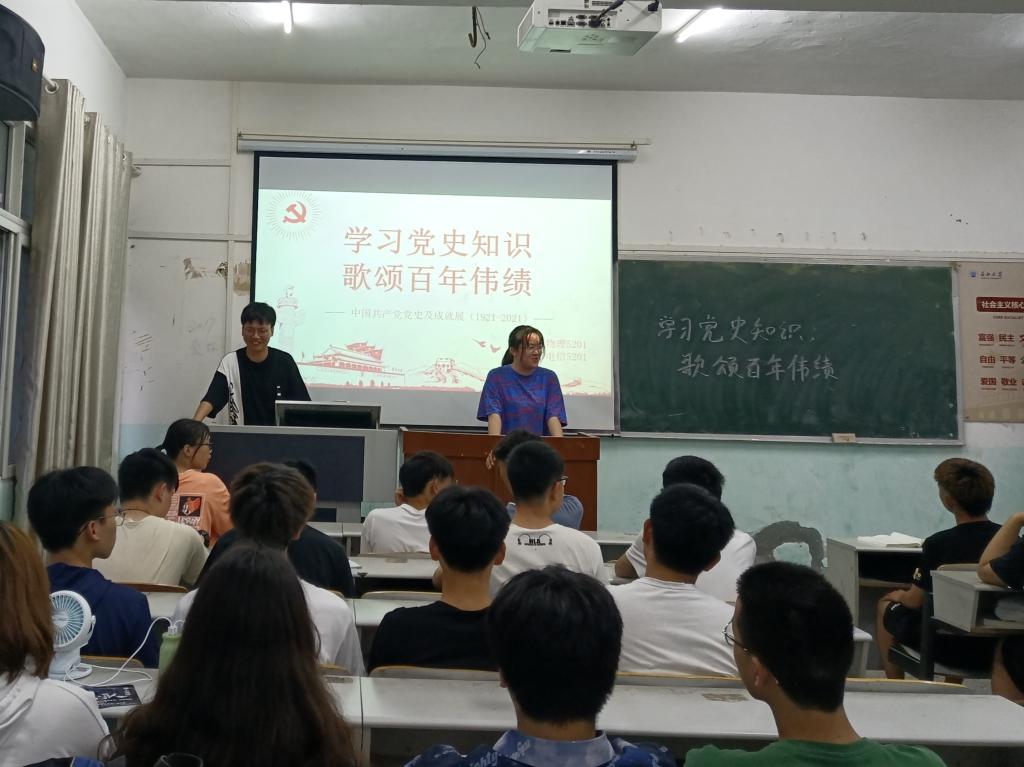 本网讯(员工记者 吴家佳)为进一步学习宣传中国共产党百年奋斗的光辉历程,提高党史学习教育实效性和感染力。近日,我系员工党支部组织各班开展以“学习党史知识,歌颂百年伟绩”为主题的宣传教育活动。活动由各班团支书主持,班级全体同学参与。