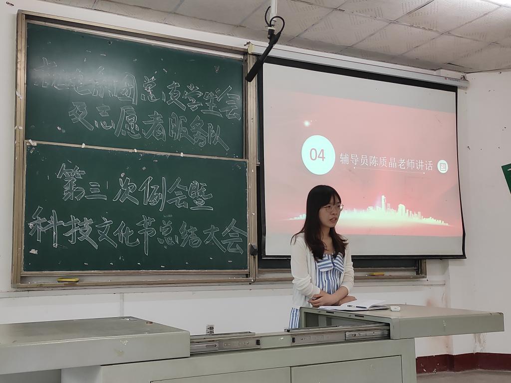 辅导员陈质晶对各个活动取得的成绩表示肯定,希望同学们从中收获,越走越远;同时也要求同学们不忘初心,提高单位时间内工作效率,学会组织、配合,对工作提前预判,落细落实,保持一颗不断向上的心,做好表率。