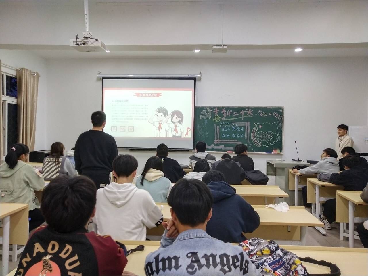 团课上,主持人通过放映PPT的方式,结合十八大以来党和国家事业取得的历史性成就、发生的历史性变革和党领导中国青年运动的光辉事迹,从“党的发展与进步”、“新的政策和方针”、“青年的责任与义务”等方面展开讲解,使同学们深刻了解了二十大的重要意义和听党指挥的重要性。随后,他邀请同学们上台发表本次团课的学习感悟,并对本次会议进行总结。他讲到:“新时代已经到来,作为进步青年,我们应贯彻党的精神,响应党的号召,以信仰之光照亮前行方向,用理想之斧劈开拦路荆棘。”